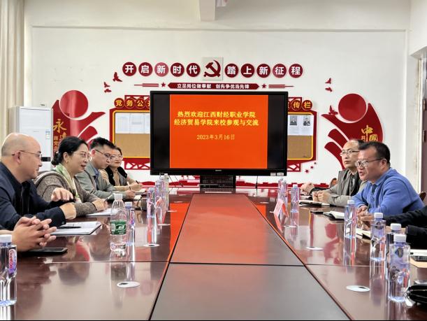 九江职院新闻网讯(经济管理学院邹火龙)3月16日下午,江西财经职业学院经贸学院院长肖细根一行来经济管理学院调研,就京东数字经济产业学院建设、学院教研室设置、专业建设与课程教学改革等工作进行交流。