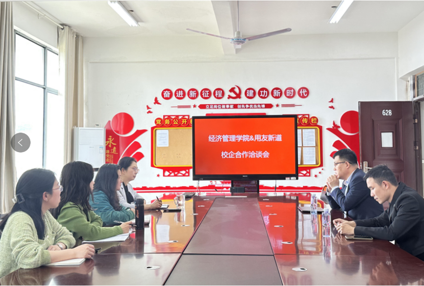 4月17日下午,经济管理学院与用友新道公司在我校濂溪校区教学楼628会议室召开校企合作洽谈会。此次洽谈会主要针对人力资源管理专业数字化升级、人才培养模式创新及社会服务途径探索进行实质化、落地化工作探讨。