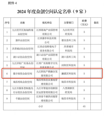 近日,九江市科学技术局公布“关于认定2024年度市级科技创新平台载体的通知”(九科字[2024]44号),江西职业技术大学“数字商贸众创空间”成功获批市级众创空间,开启了学校创新创业教育工作的新篇章。