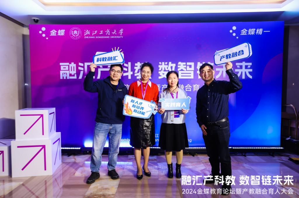 此次大会由金蝶软件(中国)有限公司、浙江工商大学共同主办,以“融汇产科教,数智链未来”为主题,旨在通过探讨科教融汇、产教融合、实践育人,畅通教育、科技、人才的有机联系和良性互动,赋能高质量高等教育和职业教育发展,推动高素质、高技能数字人才培养,助力培育新质生产力。浙江工商大学、苏州大学、深圳信息职业技术学院、浙江商业职业技术学院等多所本科和高职院校作产科教融汇、AI+专业赋能、培养商科新质人才等专题报告。