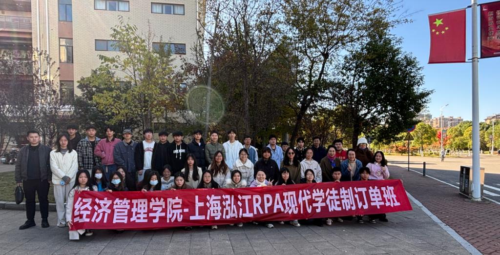 11月29日,江西职业技术大学经济管理学院泓江&来也RPA现代学徒制订单班结业仪式,在濂溪校区实训楼106举行,经济管理学院院长占跃华、企业导师史泽龙、专业骨干教师及商数2201班全班同学参加。