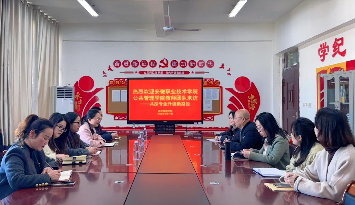 本网讯(经济管理学院)2025年3月19日上午,安徽职业技术学院公共管理学院人力资源管理教研室主任刘玲玉一行5人赴我院开展调研交流活动,调研交流会在濂溪校区教学楼628会议室召开,会议由我校经济管理学院副院长余小舰主持,部分教研室主任、人力资源管理专业教师、教务科科长、实验教师参加会议。