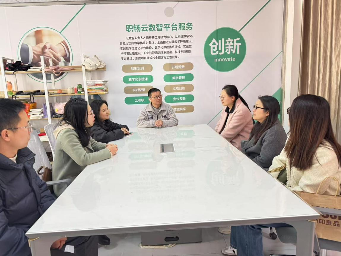 会后,人力资源管理专业负责人张江陪同刘玲玉一行前往濂溪校区参观智联驻校工作室、职畅云驻校工作室等校企合作实训场地。