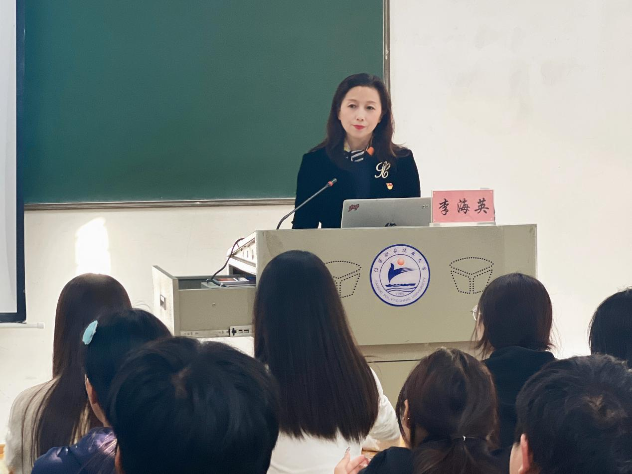 李海英从全会基本情况、准确把握全会主题的深层含义、全面准确理解《决定》提出的关于进一步全面深化改革的重大举措等三个方面对全会精神进行了系统阐释和深入解读,并结合习近平总书记在全国教育大会上的重要讲话精神,勉励青年学子“立报国强国大志向,做挺膺担当奋斗者”。最后运用生动案例,详细讲解了什么是梦想、什么是成长、什么是幸福,她寄语同学们:希望在未来的日子里,大家通过不断的奋斗,让学习和生活充满活力和光彩,展现出最美好的青春模样,不辜负这段宝贵的青春岁月。