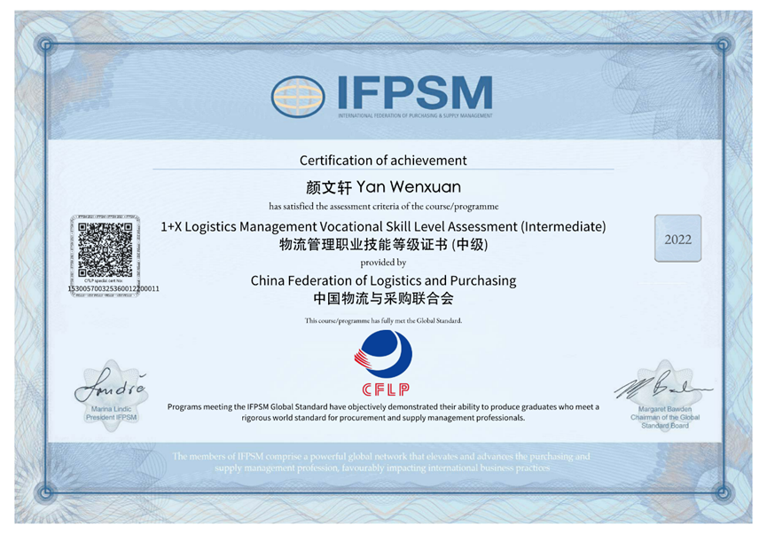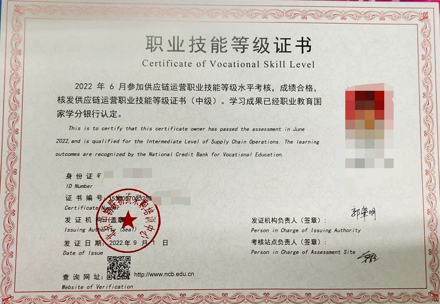 2021年起九江职业技术学院获国家教育部“1+X证书”试点院校,“1”为学历证书,“X”为若干职业技能等级证书。现代物流管理学生在校期间可以参加学校的免费培训,通过供应链1+x证书考试,你将获得以下证书