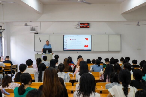 九江职院新闻网讯(经济管理学院 王嵘)6月7日下午,经济管理学院在濂溪校区科创楼A-101多媒体教室举办“扎根红土地,共绘新画卷”留赣就业创业专题讲座,邀请招生就业处副处长杨明主讲,该院大一年级113名学生代表现场聆听,其他同学通过线上方式参加。