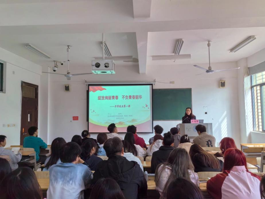 九江职院新闻网讯(经济管理学院 毛秋月)3月26日下午,校党委委员、副校长李海英在濂溪校区教学楼113教室以“绽放绚丽青春 不负青春韶华”为主题讲授“开学就业第一课”,经济管理学院党总支书记李晓明、学院辅导员与50余名学生代表一同聆听。