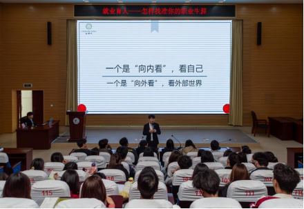 讲座特邀金膳祥生物科技有限公司人事总监叶耀主讲。叶耀以“怎样找准你的职业生涯”为题,结合自身经历,围绕职业生涯规划的意义、找准自己的职业目标、如何提升职业技能、科学面对就业压力等方面展开讲座,指导同学们确定职业方向,努力提升个人专业技能,在实践中探索出适合自己的道路。